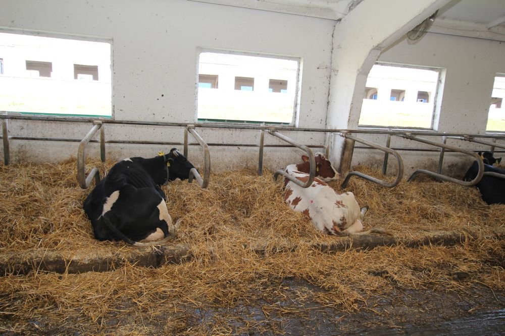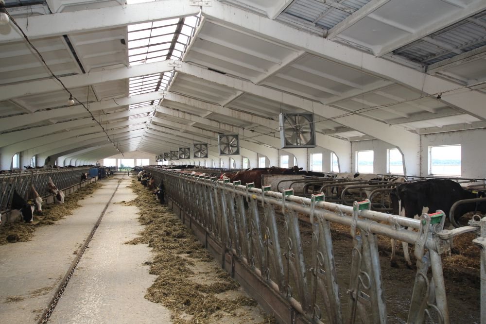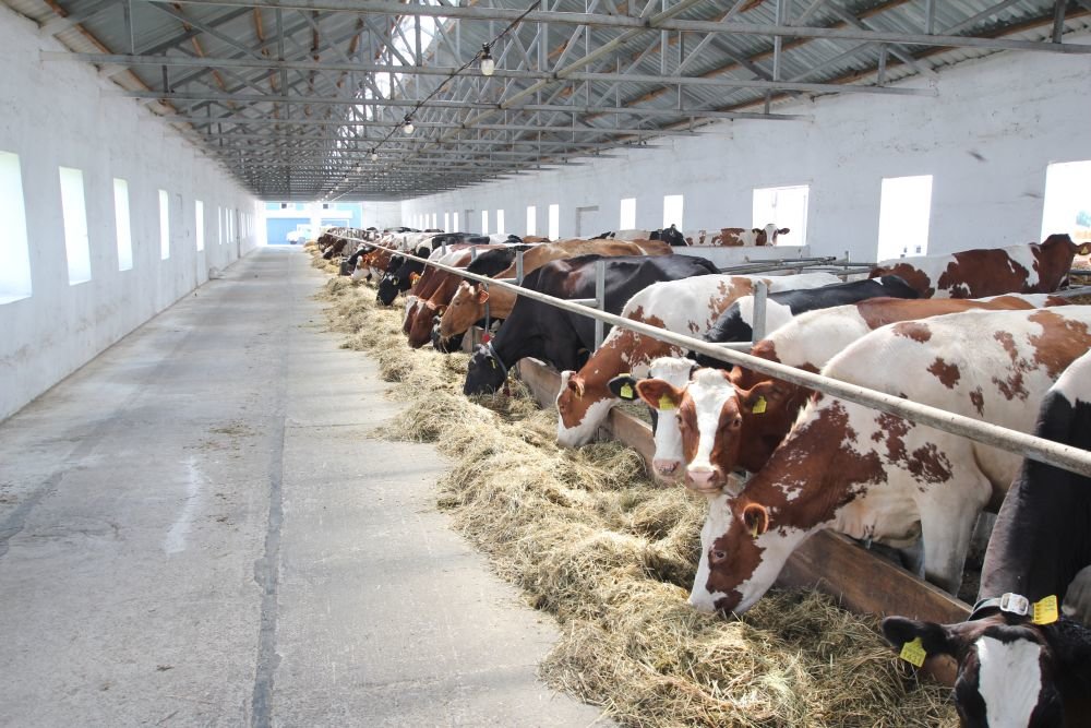 Milking is three times a day. Daily milk yield is 29 tons with a fat content of 3.8%, protein — 3.2%, SCC — up to 200 thousand per ml, bacteria count — up to 100 thousand per ml. Average daily yield per cow is 30 kg.