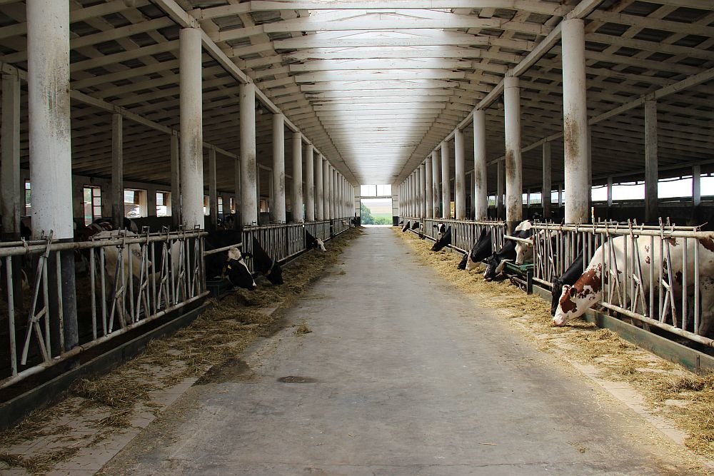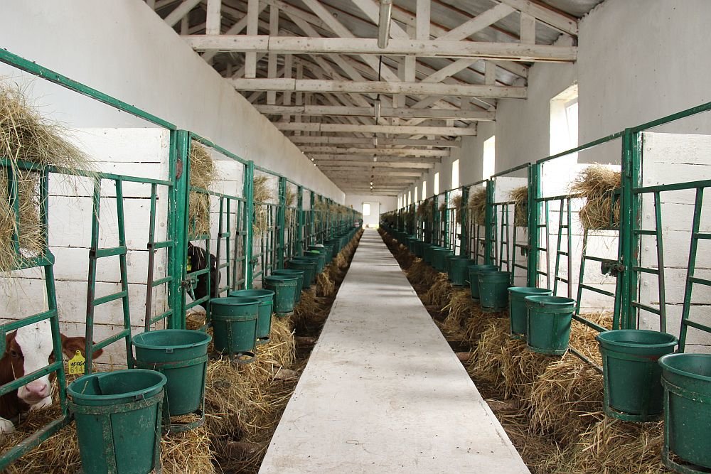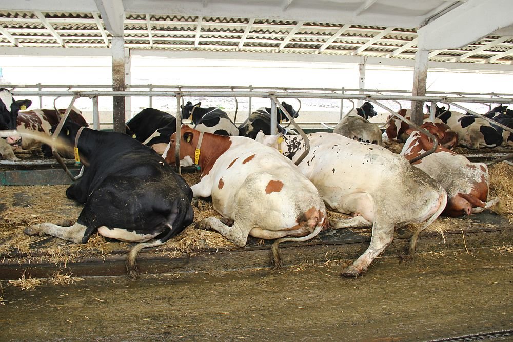 Для всех дойных коров стойла оборудованы резиновыми матами. Ранний и поздний сухостой держат на глубокой соломенной подстилке со свободным выходом на выгульные площадки.
