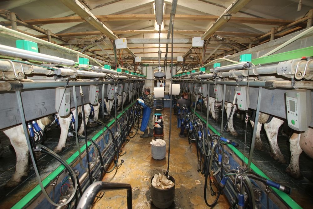 На основном молочном комплексе коров доят в двух залах типа «параллель» 2×12 (производства ДеЛаваль и ГЕА). Доение трехразовое (4.00, 12.00 и 20.00). В каждом доильном зале в смене работает 2 оператора машинного доения.
