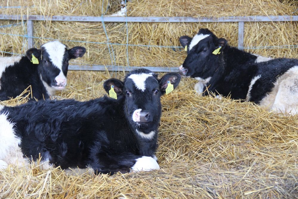Новорожденные телята обсыхают в специально отведенном месте в коровнике, где получают первую порцию молозива. Через несколько часов (в холодный период — на следующий день) их переводят в индивидуальные домики на улице. Телята пьют молоко и теплую воду, а с третьего дня жизни в их рацион вводят комбикорм собственного производства. Скармливают молоко до 60-го дня жизни. Потом еще 14 дней телята живут в индивидуальных домиках, потребляя смесь общесмешаного рациона с комбикормом. На 74-й день жизни их переводят в группы и дают рацион дойных коров.