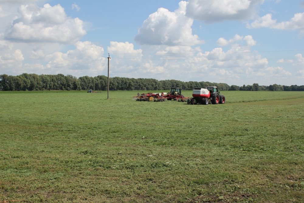 Следующей локацией было люцерновое поле, на котором продемонстрировали 7 единиц современной кормозаготовительной и кормоуборочной техники компании-партнеры.