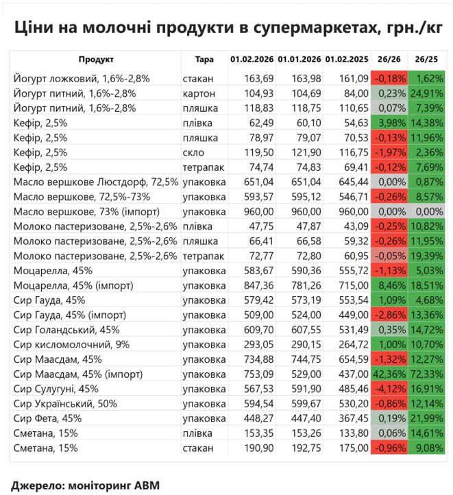 Молоко пастеризоване жирністю до 2,6% в плівці в середньому коштує 47,75 грн. за кг, що на 12 коп. (-0,2%) менше порівняно з попереднім місяцем, але на 4,66 грн. (+11%) більше відносно минулорічного періоду. Найдешевшим молоком в плівці вагою 900 г є молоко бренду «Адалис», яке коштує 41,99 грн. за кг, а найдорожчим є молоко бренду «Яготинське» – 56,94 грн. за кг.