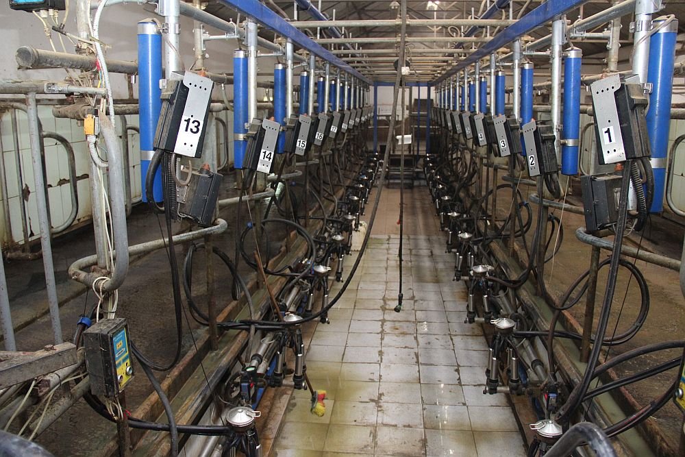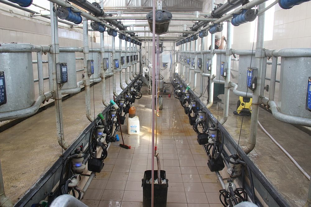 Доять у реконструйованій доїльній залі типу «ялинка» 2×12 (ДеЛаваль).