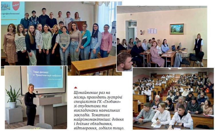 Також активно долучаємось до ярмарок вакансій та днів відкритих дверей. Розповідаємо про особливості роботи на наших підприємствах і можливості працевлаштування. Наші спеціалісти читають гостьові лекції для студентів, наприклад, зі штучного запліднення, ембріотрансферу, біобезпеки, про годівлю тощо.