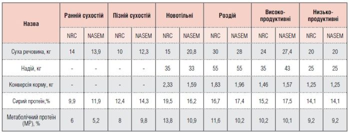Таблиця 2. Рекомендації щодо використання протеїну в NRC 2001 порівняно з NASEM 2021