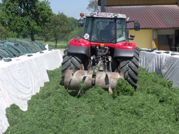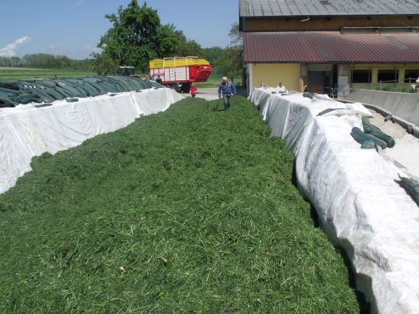 Силосні ями невеликі, їх заповнюють силосованою масою, ретельно утрамбовують і накривають за один день. Верхню плівку придавлюють мішечками з піском, щоб не допустити потрапляння повітря.