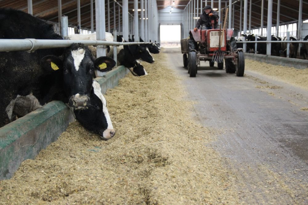 Корм роздають самохідним кормороздавачем: дійним коровам двічі на добу, решті тварин — один раз. Підгортають упродовж доби кожні 1,5 години.