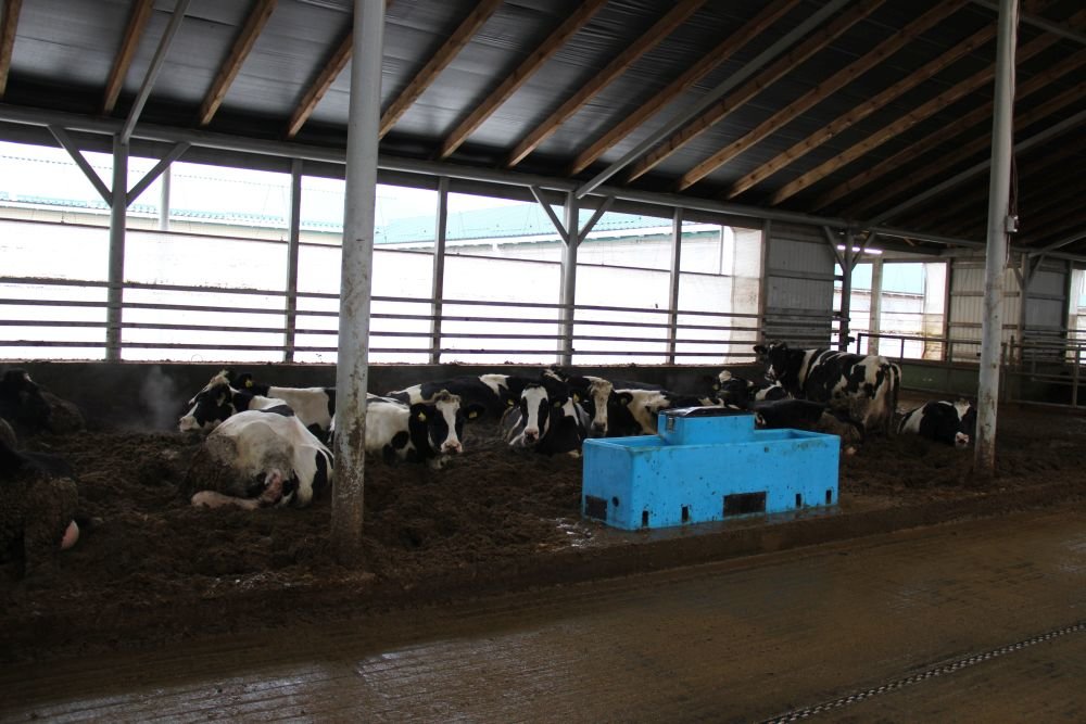 Корівники розраховано на 256 голів кожний — чотири секції по 64 голови. В господарстві відмовилися від стійл, що дало змогу здешевити будівництво на 500 дол. на голову. Немає бокових стін з вікнами. Замість них — штори.
