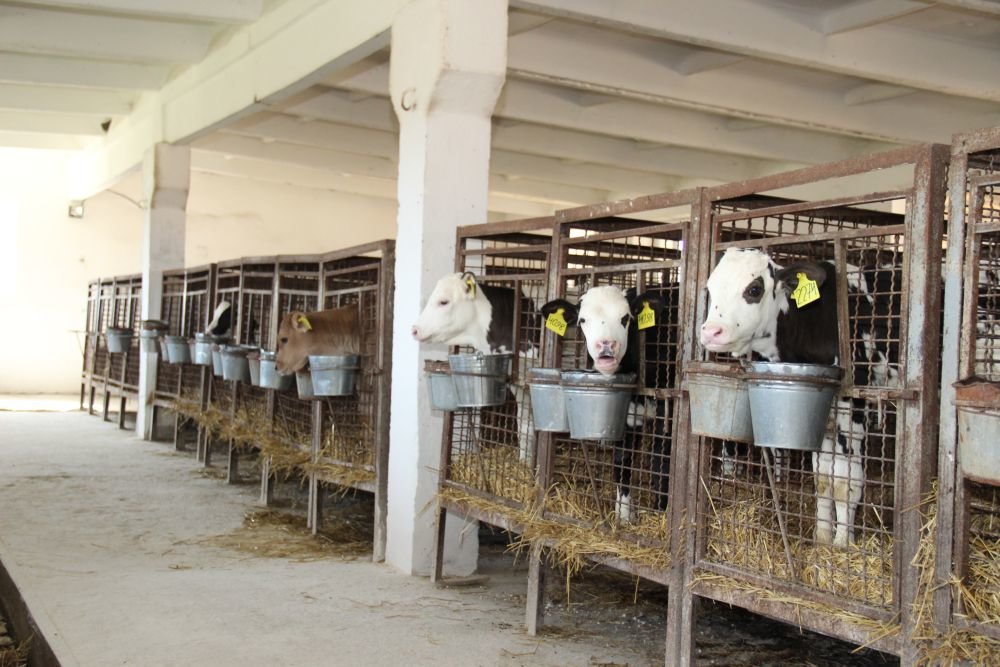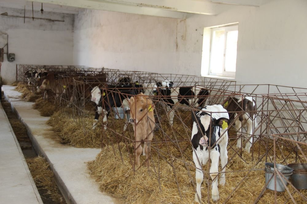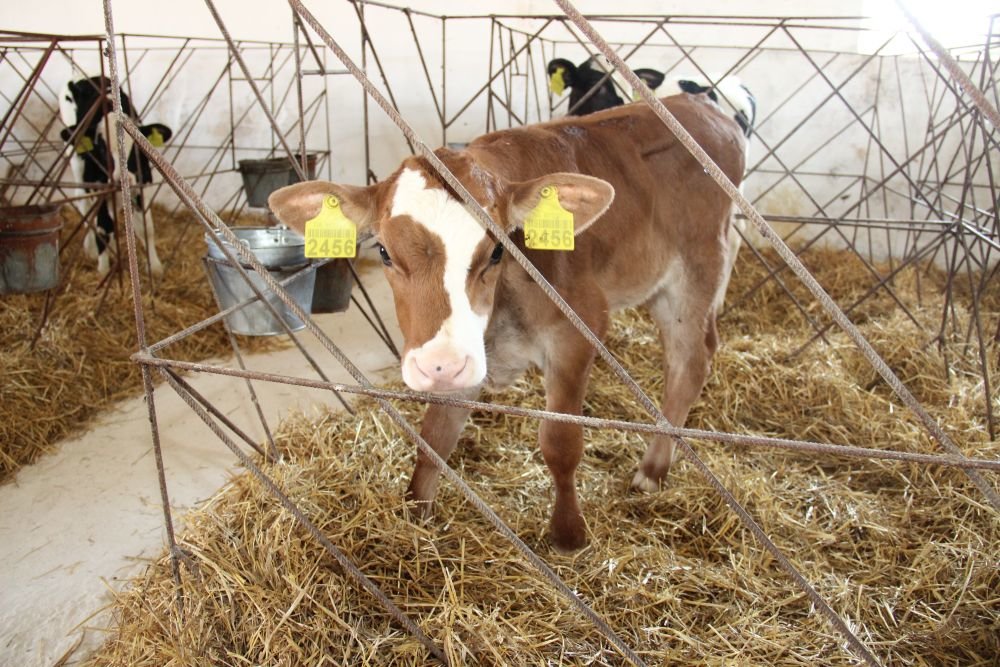 Телят молочного віку тримають в індивідуальних клітках. Випоюють незбираним пастеризованим молоком двічі на день по 4 л. Теля знімають із випоювання, коли воно з'їдає не менше 1,5 кг комбікорму на добу (протягом 3-х днів). Вода і комбікорм знаходяться біля них з перших днів життя.