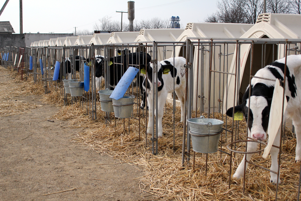 Майданчик для телят молочного періоду розрахований на 1000 місць. До 65−80 дня телята споживають пастеризоване молоко — 12 л/добу/ гол. і комбікорм з плющеним зерном (18−19% СП) — в середньому 1,5 кг. Добові прирости становлять 850−950 г/добу, маса при відлученні —105−120 кг.