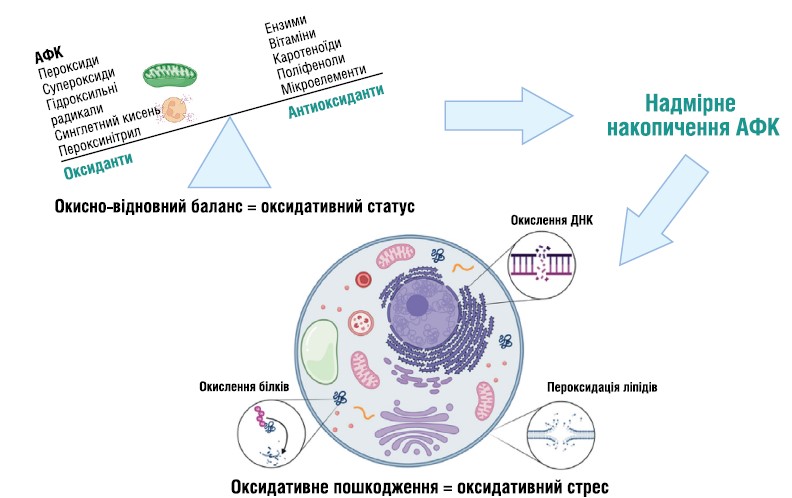 Ми звертаємо увагу на вільні радикали кисню, тому що вони дуже активні й агресивно діють на молекули і клітини, порушують структуру ДНК, пригнічують антизапальні регуляторні процеси. Оксидативний стрес знижує функціональні можливості імунних клітин і призводить до порушення регуляції запальних процесів.