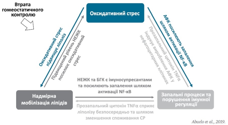 - метаболічний стрес і зміни, які викликають інші фактори стресу, сприяють оксидативному стресу та запальній реакції;