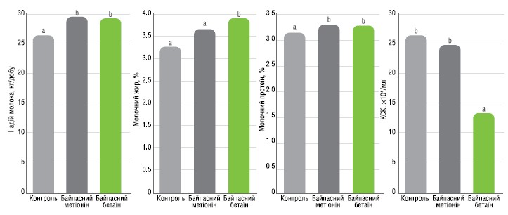 Вплив згодовування байпасного бетаїну та метіоніну на молочну продуктивність, вміст жиру і протеїну та КСК
