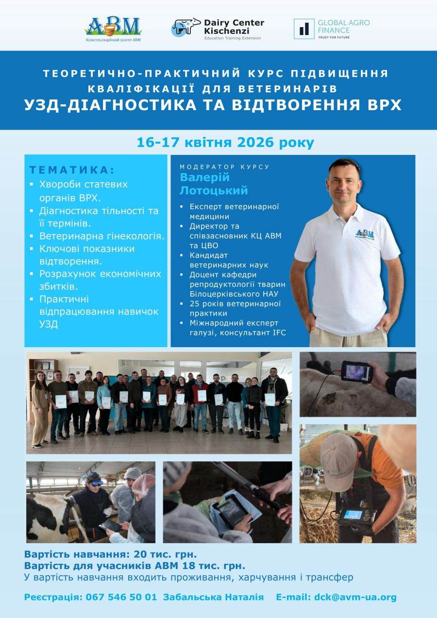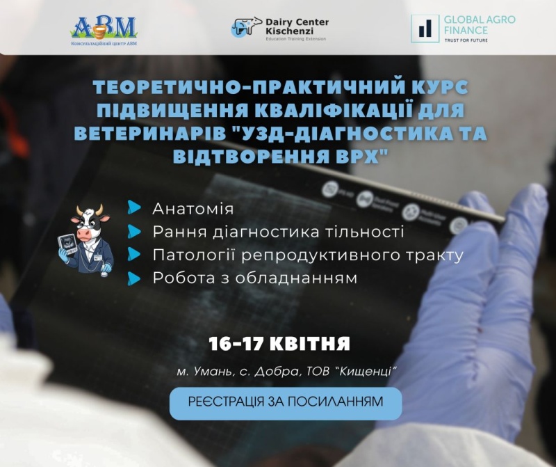 Ефективне відтворення — це про стабільну роботу ферми та зрозумілий результат. Чим раніше виявлені проблеми і підтверджена тільність, тим менше втрат і «порожніх» днів у господарстві. Сьогодні для цього є сучасні інструменти, які допомагають працювати точніше і впевненіше. Запрошуємо на теоретично-практичний курс «УЗД-діагностика та відтворення ВРХ».