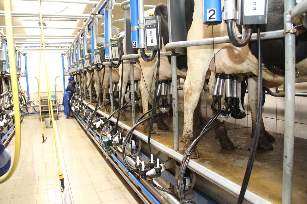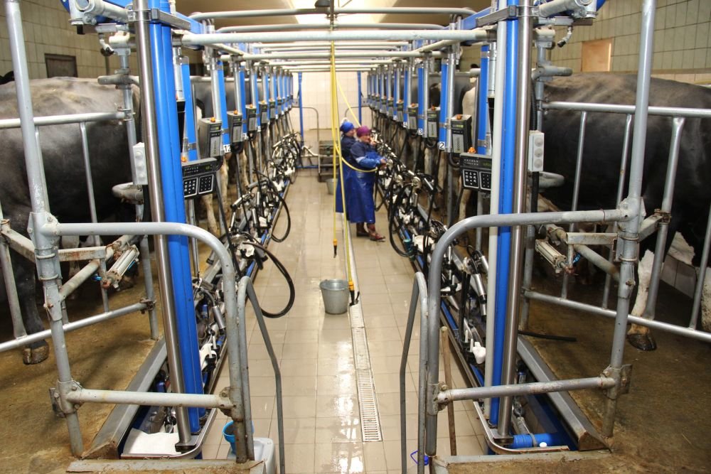 Milking is three times per day. According to the results of 2017, they had 8400 kg of milk per cow. Somatic cells count is up to 200 thousand per cubic cm, bacterial contamination is up to 150 thousand per cubic cm.