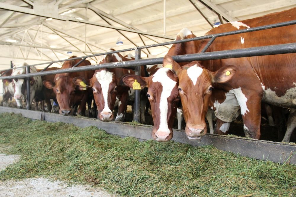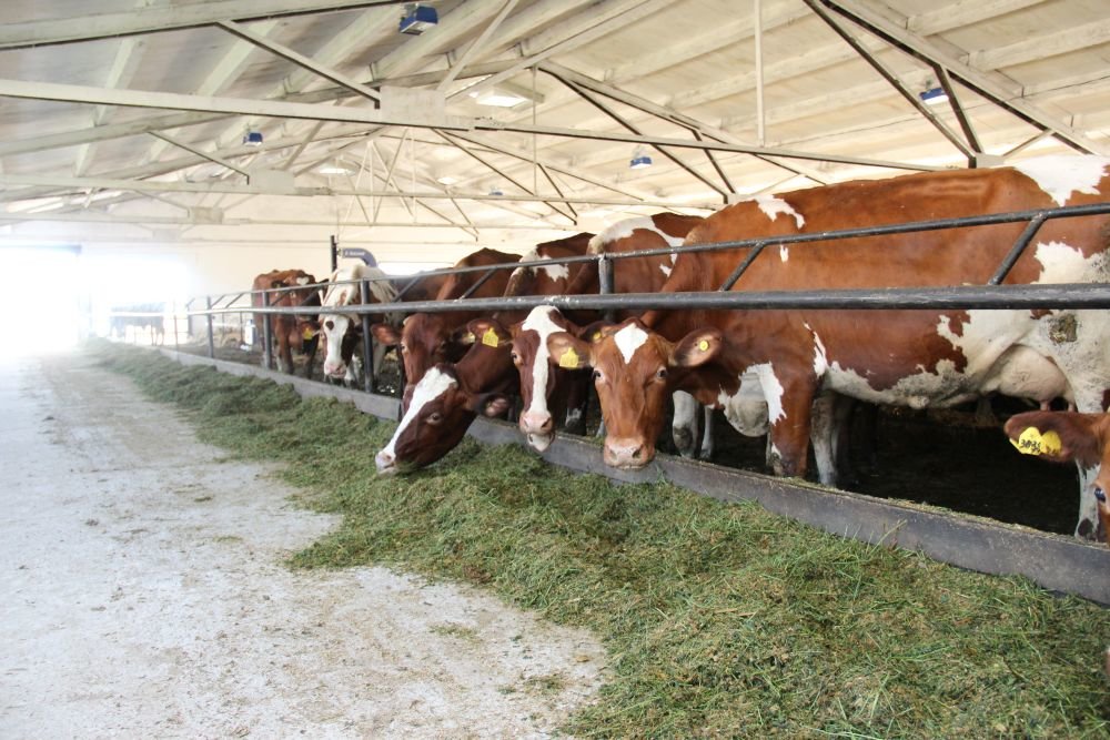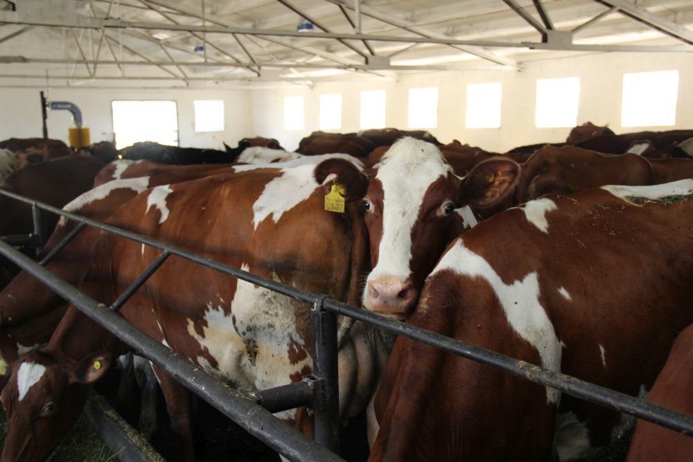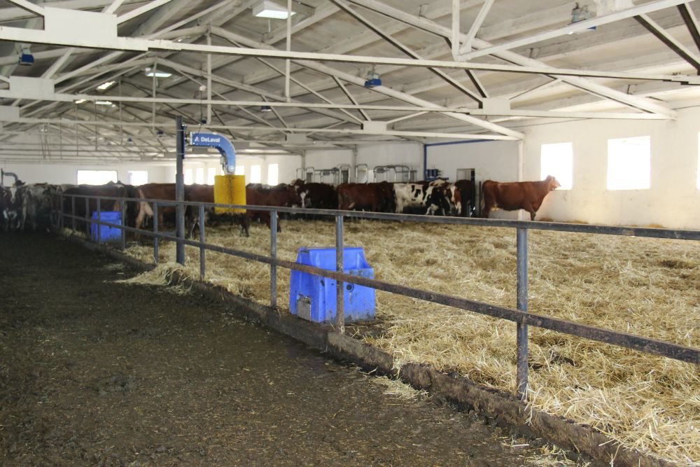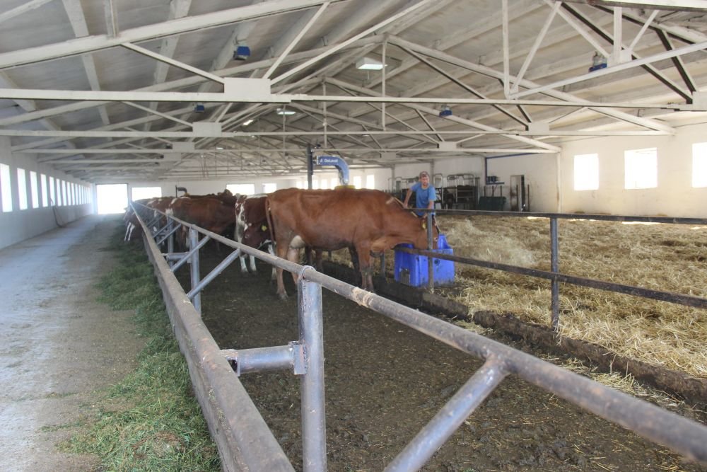 Total herd is 2,800 heads of cattle, including 760 dairy cows. The breed is Ukrainian red. Free stall housing system.
