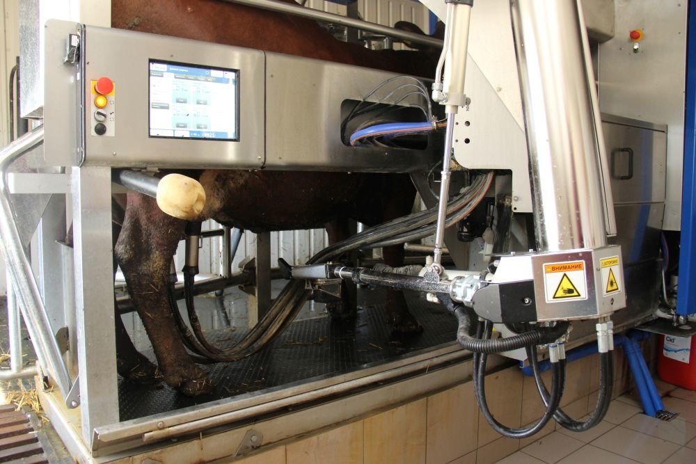 In the milking perlour cows are milked twice a day, in the voluntary milking system — 2.78 times. The average daily yield is 24 kg of milk. In 2016 milked 6250 kg of milk per cow, in 2017 they plan to get about 7000 kg.