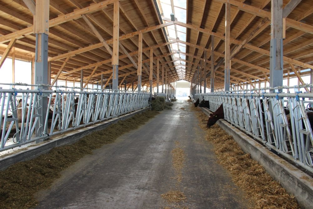 Since 2014, two barns with one row of stalls on both sides from fodder place, milking unit with «parallel» 2×9 (DeLaval), pen for dry cows, fresh cows and problem cows, calving pen with a milking unit «parallel» 1×5 (DeLaval), calf pen for individual housing of milk age calves were built. Also they equipped open lots.