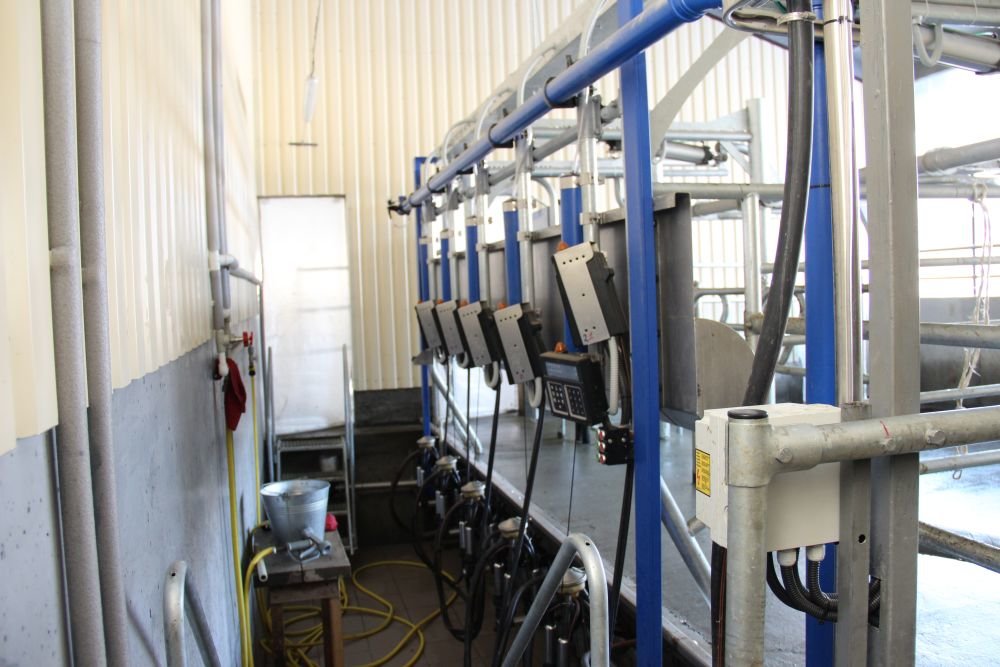Cows are milked three times a day. Average daily yield — 25 liters per cow. The fat content is 3.8−3.9%, protein content — 3.3%.
