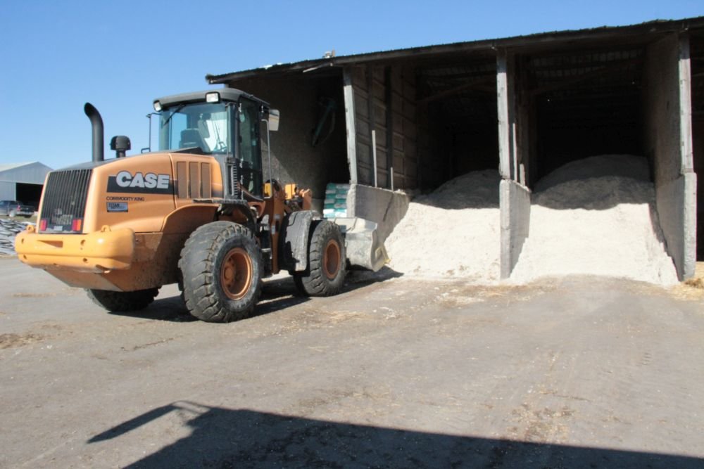 Восстановленная песчаная подстилка. Коров держат в стойлах на восстановленной песчаной подстилке. Три раза в день, когда коровы идут на дойку, из секций удаляется гной с помощью бобкета с раскладной резиновой лопатой.