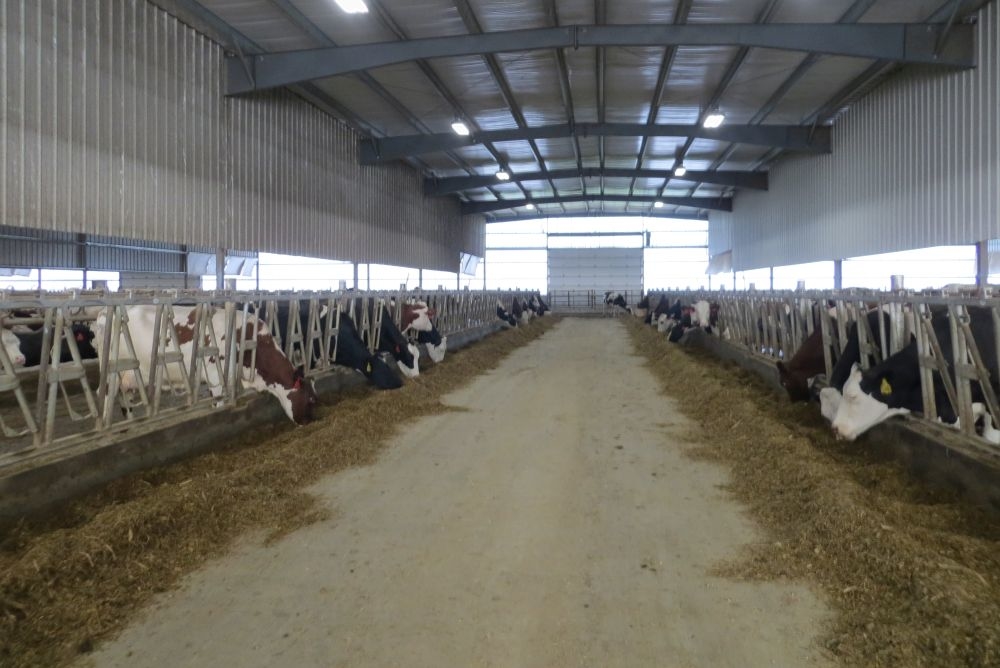 Только дойных коров (за исключением новотельных) держат в низкопрофильном коровнике с поперечной вентиляцией. Он рассчитан на 450 голов. В коровнике нет неприятного запаха, воздух свежий, а коровы очень чистые, и около 90% животных лежат, жуя жвачку.