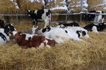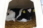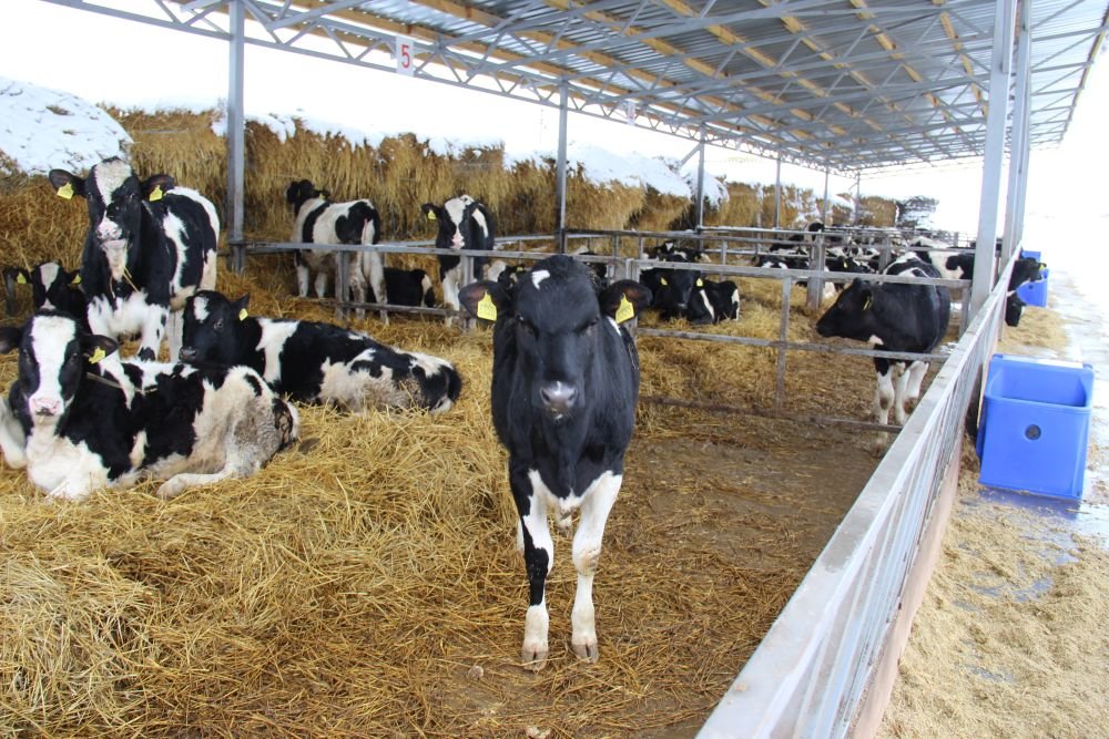 Новорожденные телята обсыхают в специально отведенном месте в коровнике, где получают первую порцию молозива. Через несколько часов (в холодный период — на следующий день) их переводят в индивидуальные домики на улице. Телята пьют молоко и теплую воду, а с третьего дня жизни в их рацион вводят комбикорм собственного производства. Скармливают молоко до 60-го дня жизни. Потом еще 14 дней телята живут в индивидуальных домиках, потребляя смесь общесмешаного рациона с комбикормом. На 74-й день жизни их переводят в группы и дают рацион дойных коров.