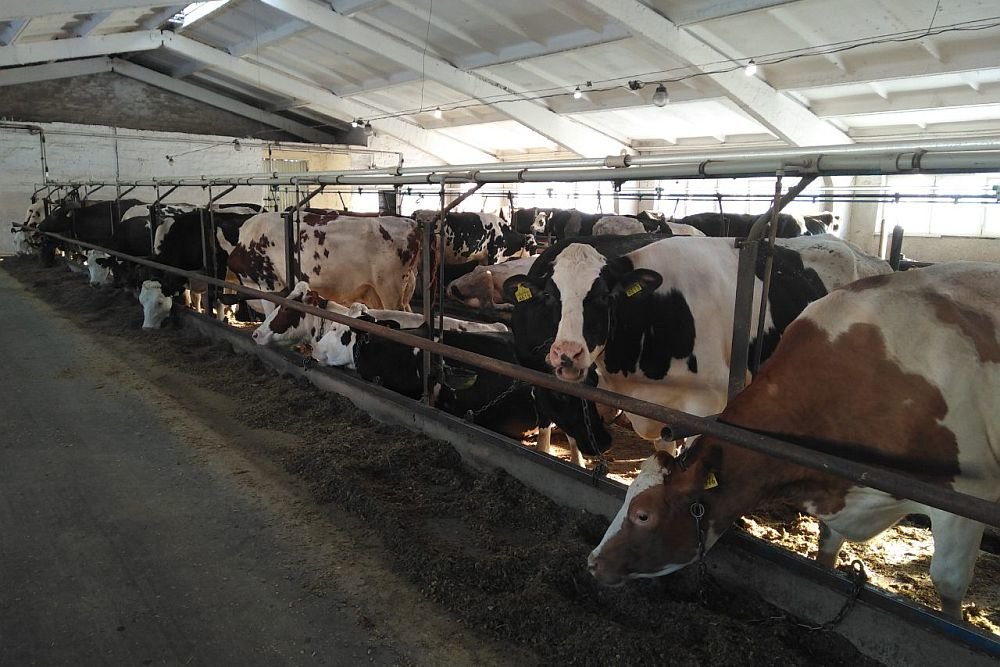 Общее количество КРС — 2800 голов, дойное стадо — 1100 коров.