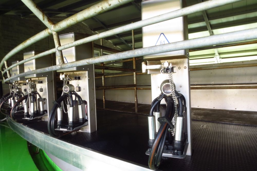 Корів доять тричі на день у три зміни в доїльній залі типу «карусель» на 80 місць (DeLaval). Упродовж однієї зміни доїльну установку обслуговує троє працівників.