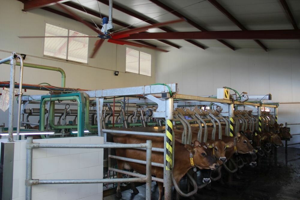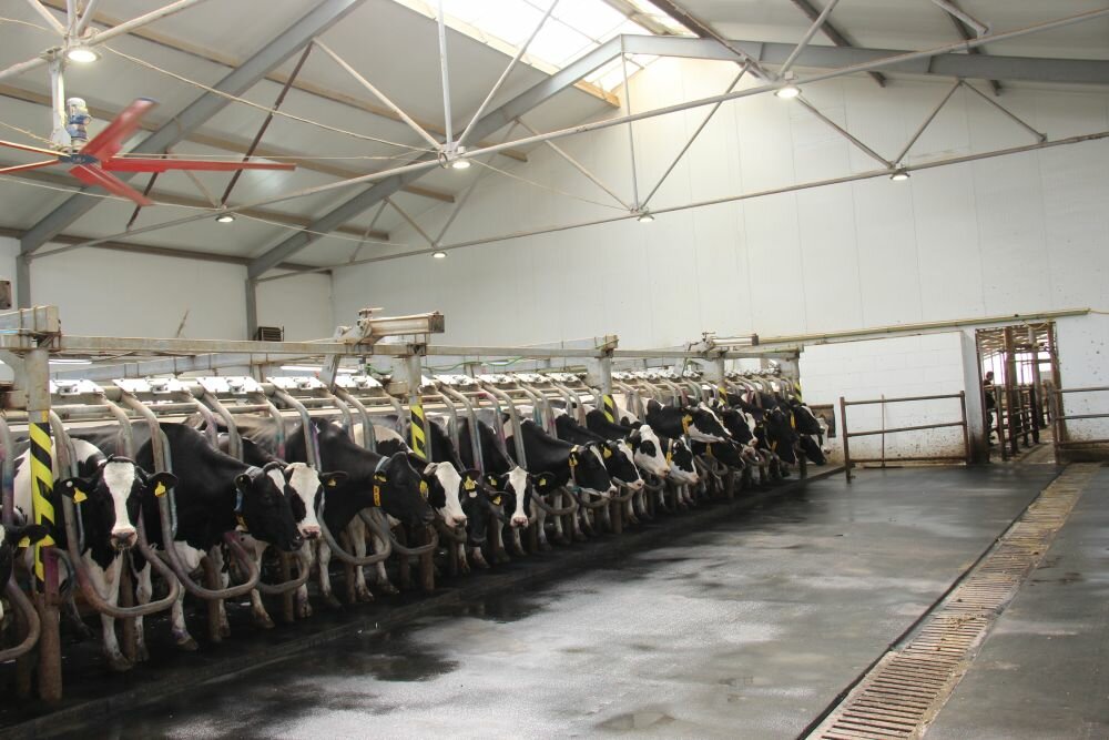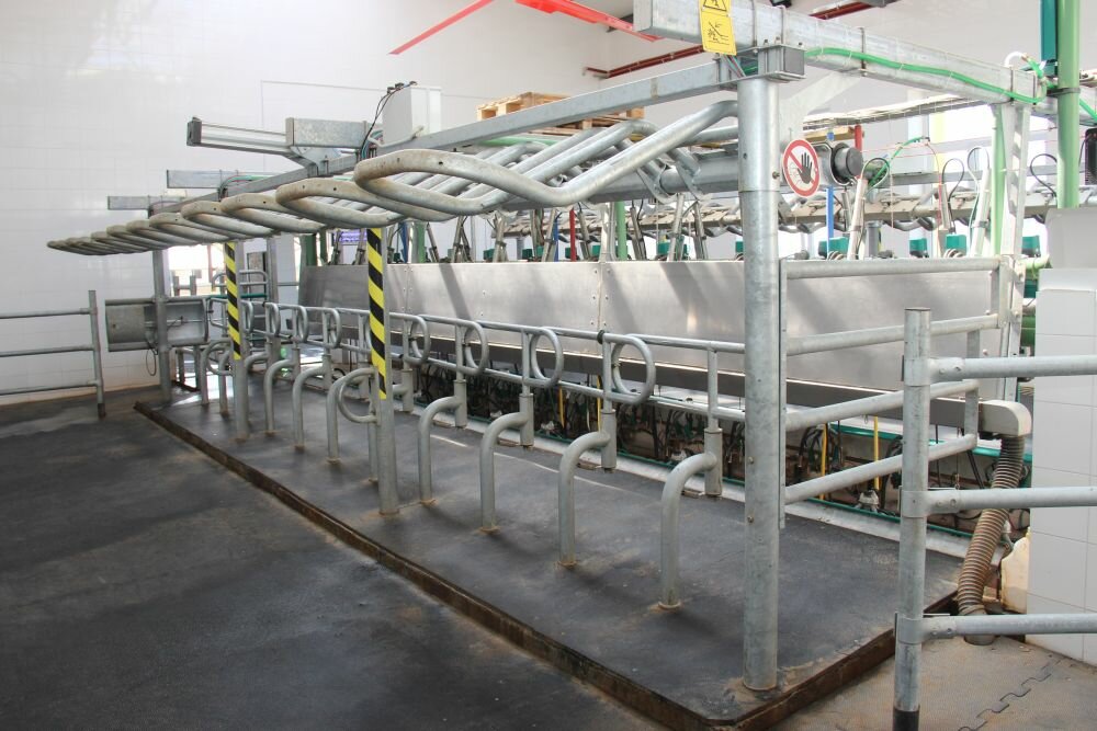 Доїльна зала «паралель» GEA Global 90i 2×24, доповнена чотирикамерними доїльними апаратами IQ, обслуговує 1650 корів тричі на день.