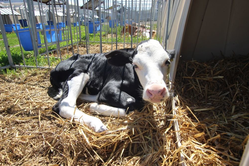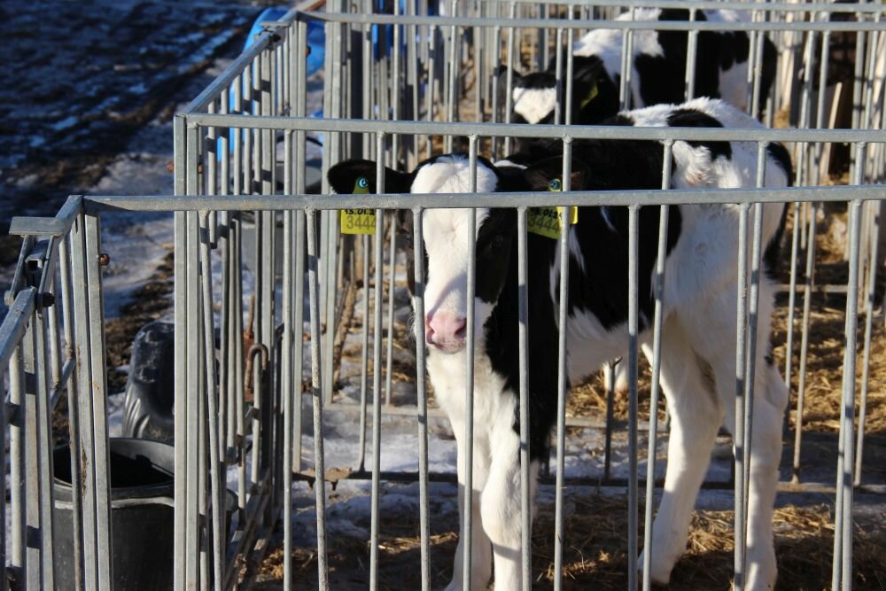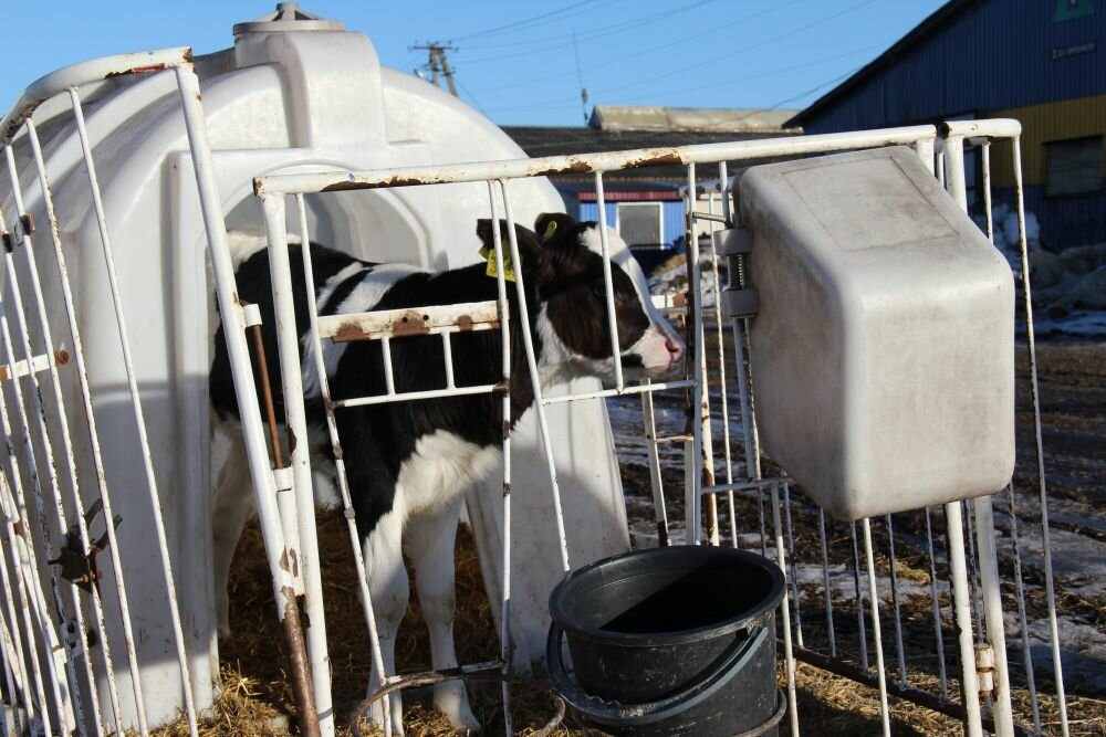 Одразу після народження впродовж перших 2 годин кожне теля (телички і бички) отримують 3 л розмороженого молозива температурою 36−37 °С. Після випоювання теля поміщають під інфрачервону лампу, де воно обсихає, і після того переводять в індивідуальний будиночок.