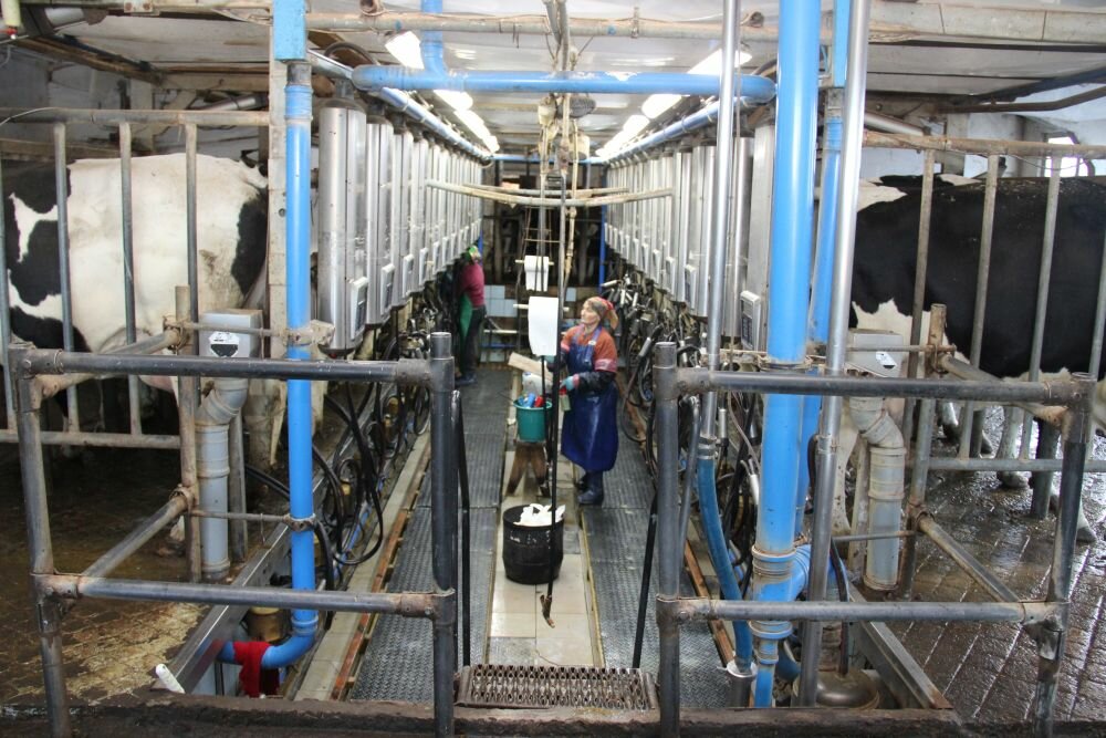 На основному молочному комплексі корів доять у двох залах типу «паралель» 2×12 (виробництва ДеЛаваль і ГЕА). Доїння триразове (4.00, 12.00 і 20.00). У кожній доїльній залі у зміні працює 2 оператори машинного доїння.