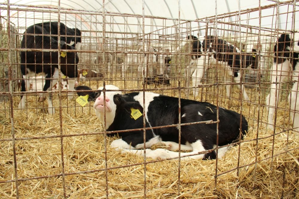 У першу годину життя телят випоюють молозивом. Якщо протягом години теля добровільно не п'є молозиво із соски, його поять примусово — через зонд. Потому теля переводять в індивідуальну клітку. У зимовий період його кладуть під інфрачервону лампу для обігріву.