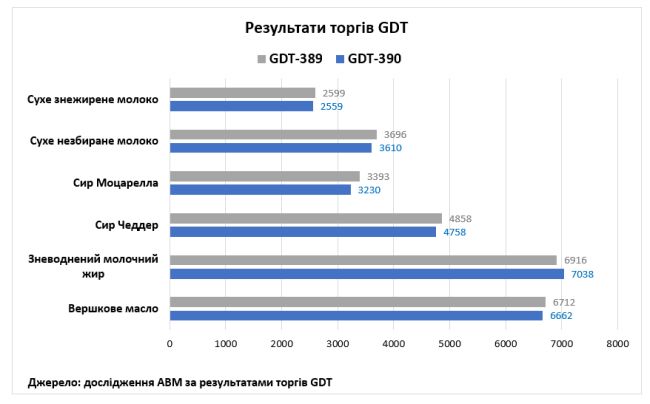 За результатами торгів, ціна на зневоднений молочний жир становила 7038 дол. за т, що на 122 дол. більше відносно попередніх торгів. Як повідомляє USDA, у Європі попит на молочний жир стабільний, а ціни на товар укріпилися в нижньому діапазоні.