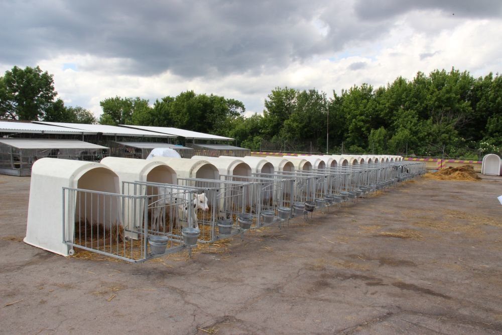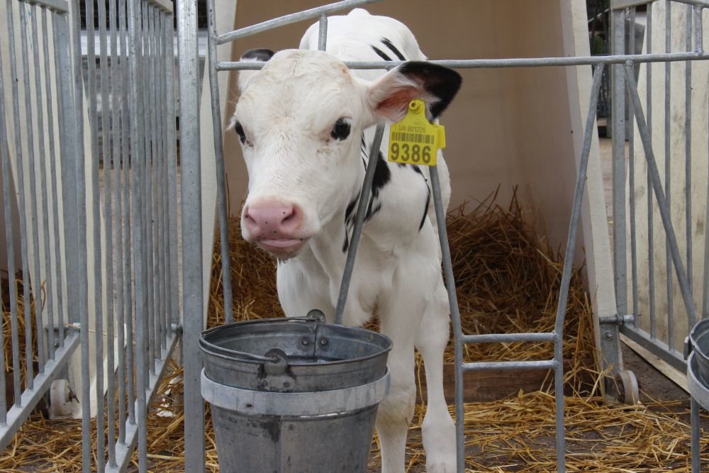 Новонародженим телятам двічі по 3 л випоюють молозиво — у першу та дванадцяту годину життя. Потім переводять в індивідуальні будиночки, де вони перебувають два місяці. До 21-го дня телятам випоюють 3 л незбираного молока двічі на добу. З 21-го до 60-го дня дають замінник — 7 л на добу, на який переходять поступово — протягом 5−6 днів. Із третього-четвертого дня життя привчають пити з відерець. Молоко й молочну суміш транспортують та дозують молочним «шатлом», що розрахований на 240 л і обслуговує 80 голів.