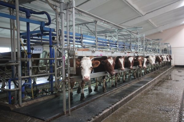 Доїльне обладнання — зала типу «ялинка» 2×16 (ДеЛаваль) та міні зала 2×3 для новотільних корів. Тварин доять тричі на добу два оператори. Доїльний блок почав працювати влітку 2013-го. Планують отримувати 25 кг молока від корови на день.